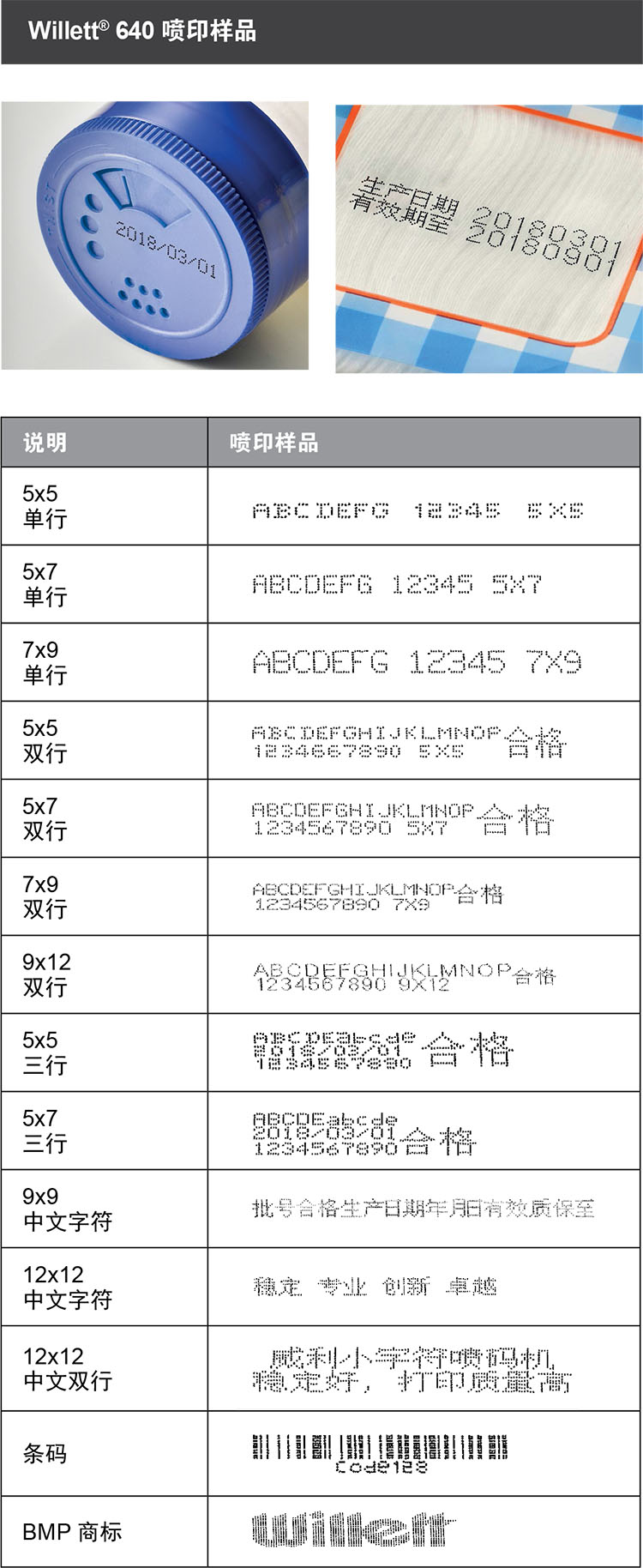 Willett 640 小字符 (CIJ) 噴碼機專為中小型制造商而設(shè)計,提供操作速度更快、噴碼質(zhì)量更高、性能更穩(wěn)定的噴碼解決方案。